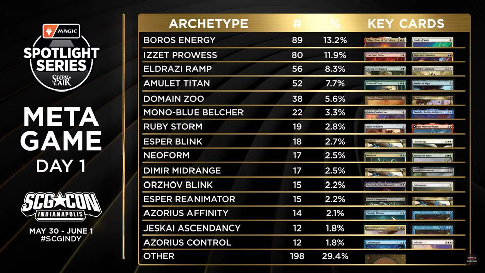 Boros Energy was the most popular deck in the field, but by the end, it didn't crack the Top 16 (though one Mardu Energy did). Instead, we were treated to a veritable buffet of decks, with seven different decks making up the Top 8 and twelve different lists making up the Top 16.