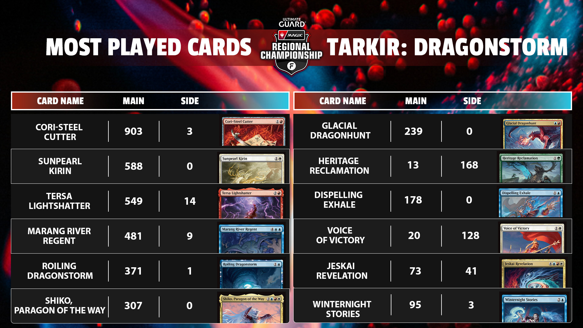 The Standard metagame at the Ultimate Guard Regional Championship in Bologna was largely driven by new cards from Tarkir: Dragonstorm.
