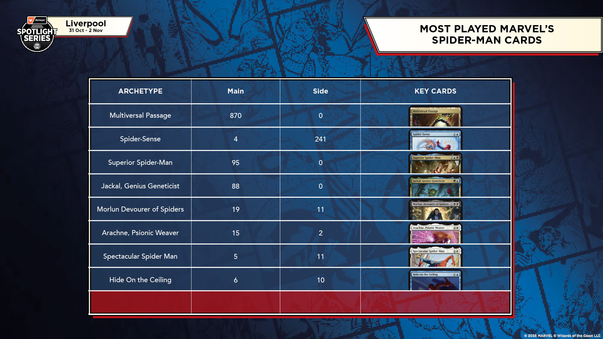 This past weekend, 580 players gathered in Liverpool, England, for Magic Spotlight: Spider-Man. With a $50,000 prize pool and eight coveted Pro Tour invitations at stake, the competition was fierce. After fifteen intense Swiss rounds of Standard followed by a high-stakes Top 8 playoff, Alexey Paulot claimed the title, piloting the deck that defined the event: Izzet Cauldron.