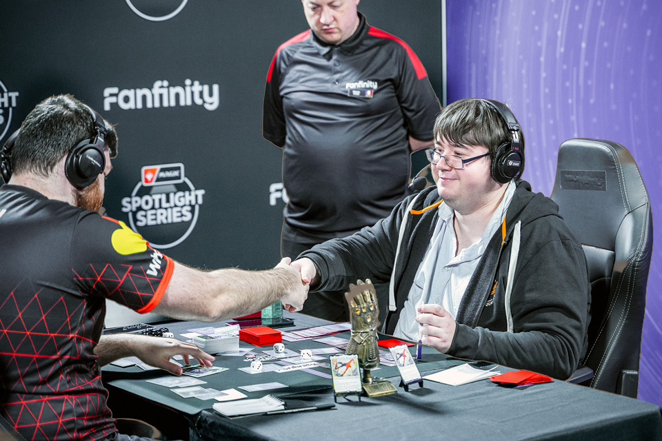 In addition to the $10,000 1st-place prize, Spotlight Series events come with rewards steeped in thematic flair. For Magic Spotlight: Spider-Man, Marvel and East Continental Gems brought the Infinity Stones to life using real gemstones. The winner received a dazzling Infinity Gauntlet winner's trophy embedded with a madeira citrine stone to represent the Soul Stone.